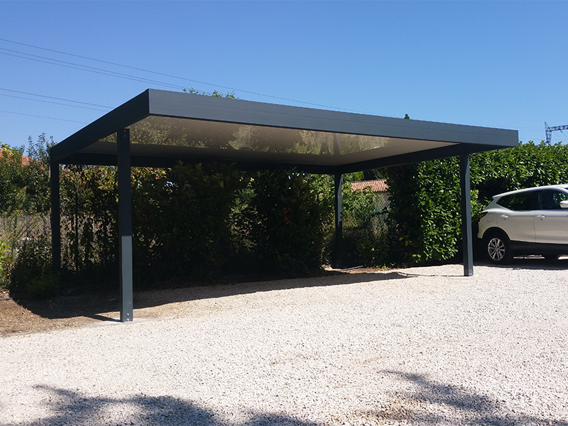 Support en aluminium extrudé thermolaqué, traitement des surfaces normes QUALICOAT et QUALIMARINE , dimension hors tout, grande portée, différents types de toiture, adaptabilité au support.